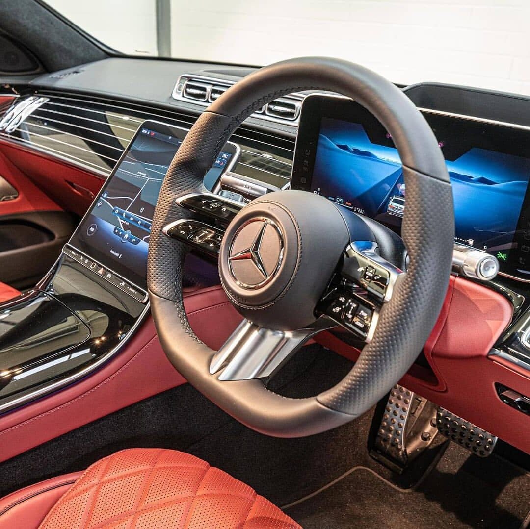 This grade is equipped with a V8 engine, alloy wheels, suspension system, Burmester 3D surround sound system, augmented reality navigation system, wireless charging for phones, ventilated and massaging front seats, soft-close doors, and a driver assistance system. - Mercedes-Benz S 580e Plug-in Hybrid